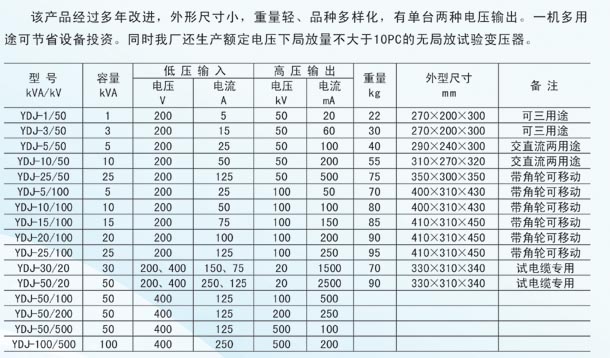 YDJ型油浸試驗變壓器